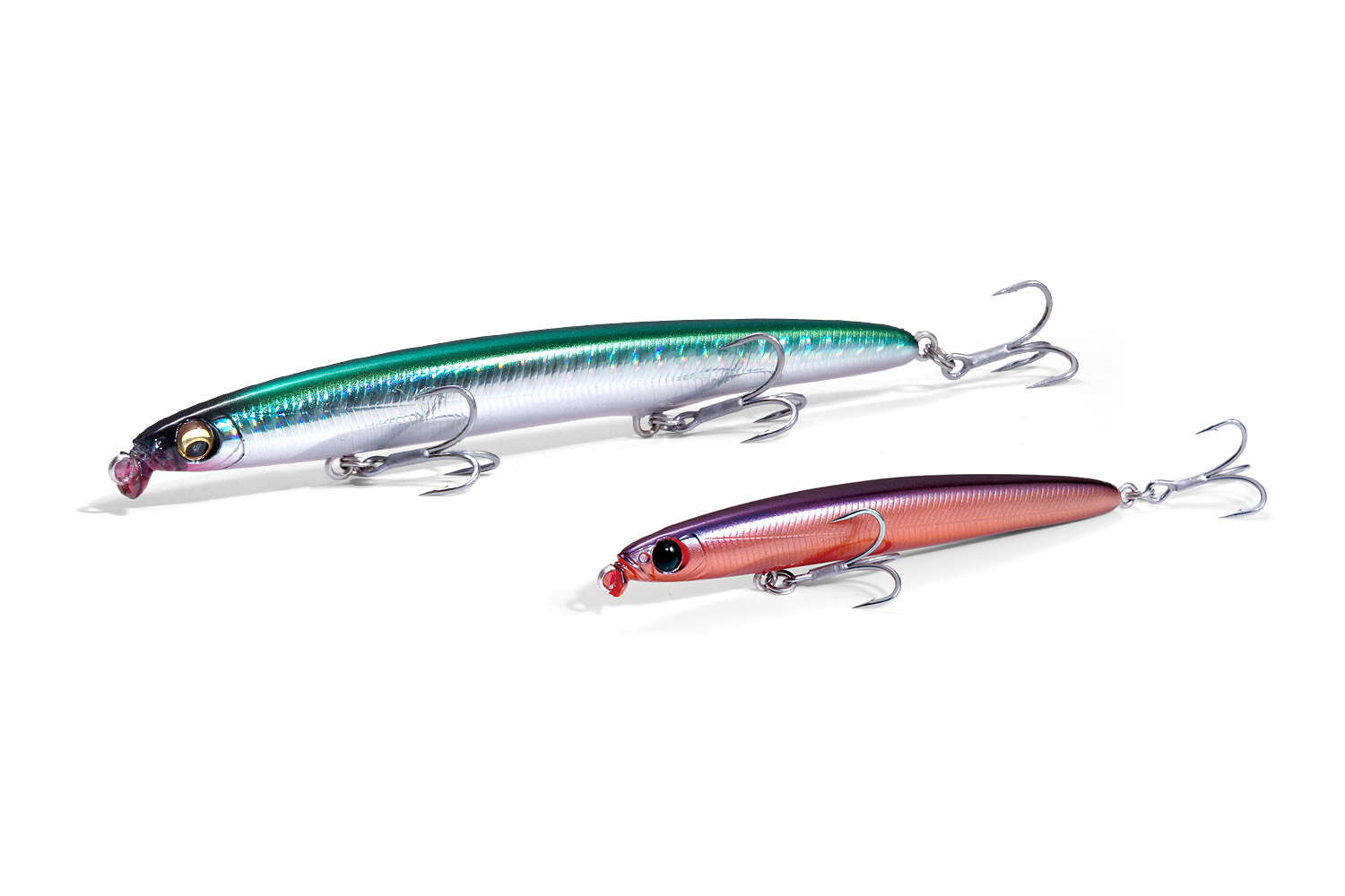 タフなターゲットに対する違和感をなくし、フレキシブルでナチュラルなアクションを実現。 ボディの感応性を極限まで高めたAYUTWITCHERのボディフォーマットは、河川のゲームやバックウォーターなど流れが干渉するフィールドで卓越したスイミングパフォーマンスを発揮。止水のゲームでは緻密なコンタクトを可能とし、クレバーフィッシュのリアクションバイトを積極的に誘発します。