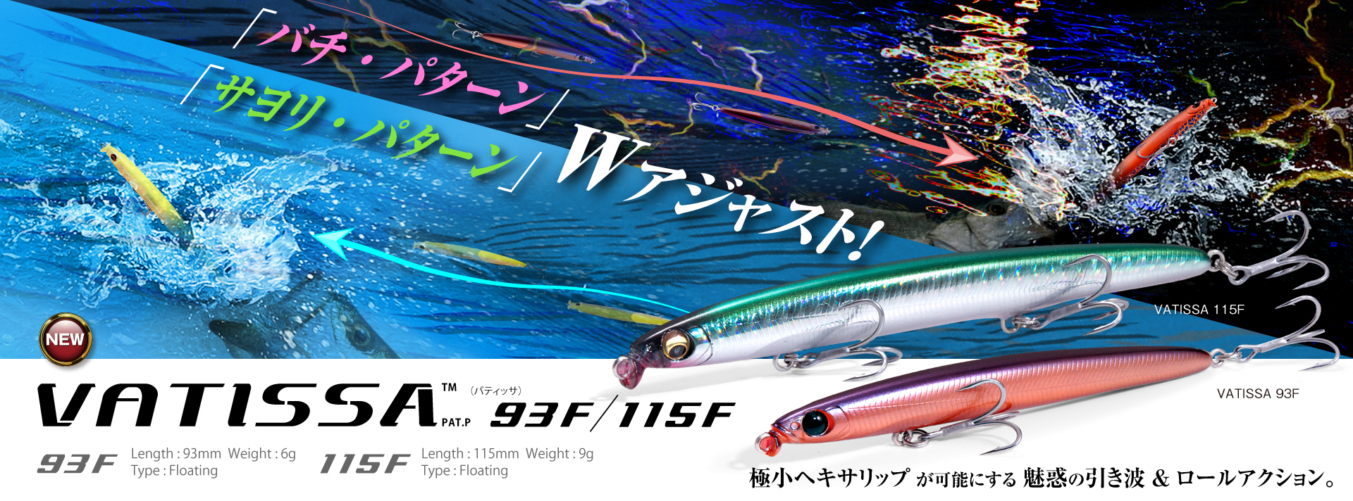 VATISSAは、卓越したエアロダイナミクスとマグネティック重心移動システムにより、スーパースリムボディの常識を覆す、圧巻のロングディスタンス・キャスタビリティを実現。 新機軸スリムベイト、VATISSAの卓越したアジャスタビリティと通常のミノーでは太刀打ちできないタフな状況下での圧倒的な誘引力は、湾岸のシーバスゲームを一変させます。