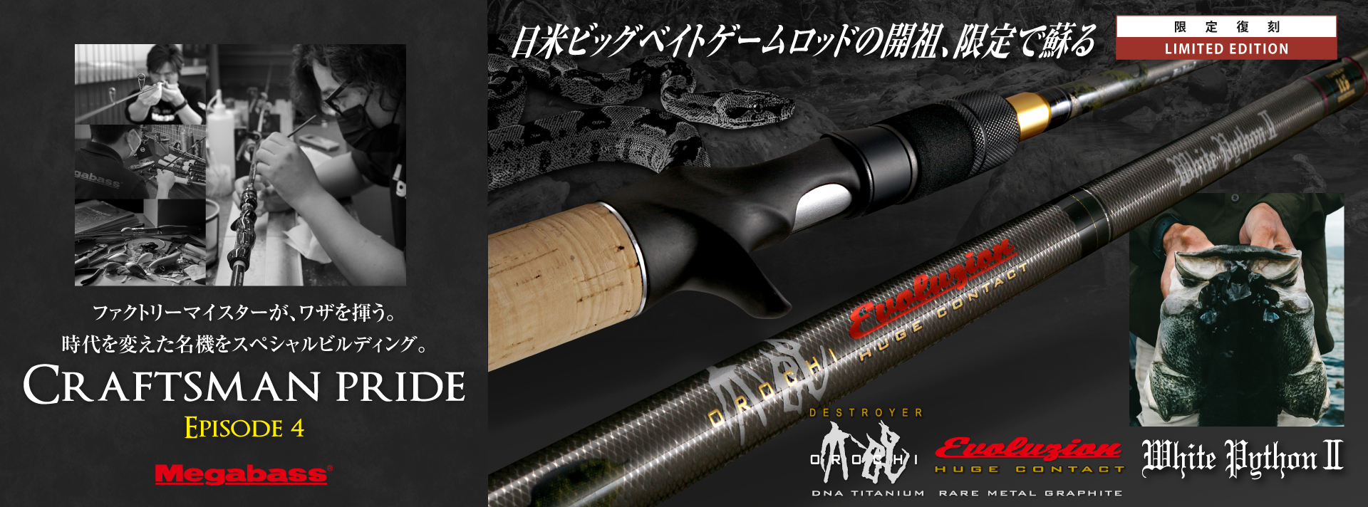 グレートハンティング「HUNTSMAN」は、メガバスファクトリーの開祖であり、初代ARMSの製作者、伊東由樹のロッドビルディング哲学をメガバスファクトリーのハンドメイドマイスターとアイティオーエンジニアリングのモダンテクノロジーによって現代に継承する、トラウトロッドのエクストリームモデルです。