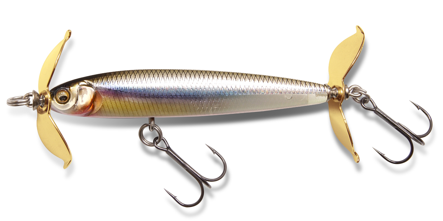 特殊形状・前後逆回転の大型プロップを採用し、ヘビーウェイトでも安定したスイム姿勢とレンジキープが可能。プロップの生み出す波動とフラッシングで広範囲にアピールします。