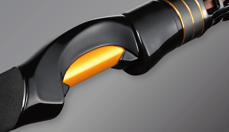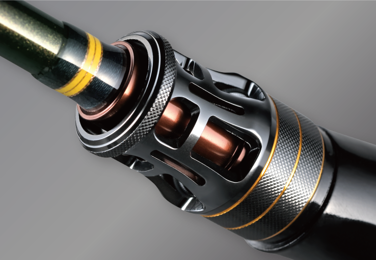 1フィンガーのみならず、フルパーミングでリールを握り込んだ際など、全方位で自然にフィットするグリッピングを実現させたエルゴノミックリールート。フード部にまで及ぶフィッティングの一体感をとことん追求し、ブランクタッチによるグリッピングなど、様々な握りスタイルのホールドにおいて、低負荷時から高負荷時に至るまで、あらゆるロッド保持の安定性と操作性を格段に向上させる、最先端の人間工学を導入したエルゴノミックデザインです。