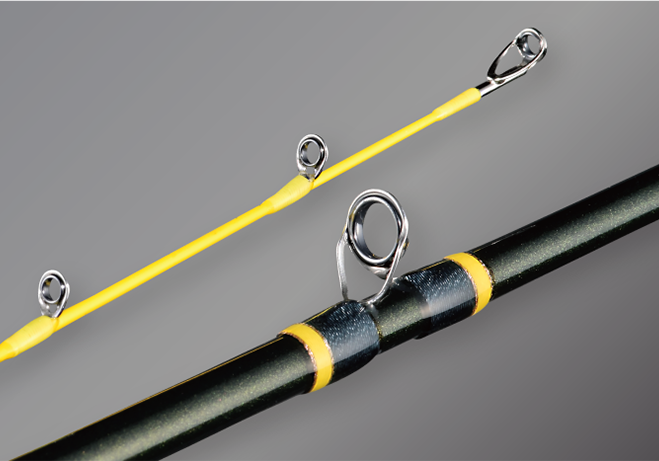 ベイトロッドモデルについて、ガイドへの糸絡みと、ロッドの捻じれを徹底低減させ、スパイン(ロッドの背骨位置)を考慮したスペシャルブランクスと相まって、垂直落下の方向にかかる負荷をらせん状に分散させるスパイラルガイドシステムを搭載。