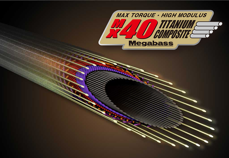 ベリーからバットセクションに高密度に配合したMX40スーパーチタンファイバーは、特製ソリッドティップが感知したバイトを金属質テンションで的確に即掛け、ファイトの応力をバットセクションまで広域に受け止め、ビッグバスをいなす豊かなファイティングトルクを発揮。なお、これまでのピュアカーボン製シャフトによるソリッドティップロッドとは異なり、チタンブランクによるバネ弾性が軽量リグを楽々ロングキャスト。快適なキャストフィールをもたらしています。 -