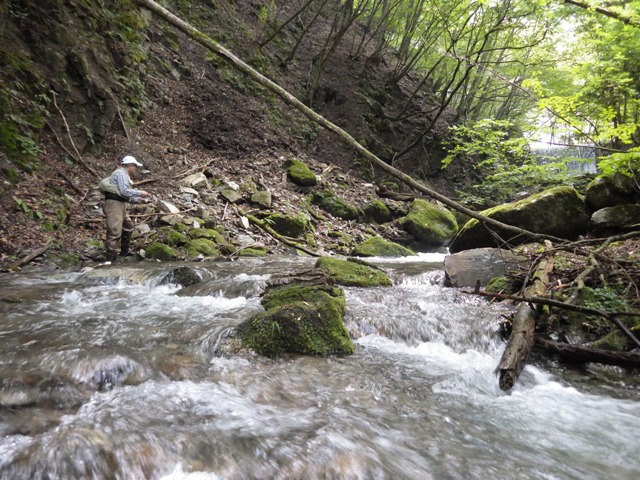 流れの速い増水傾向の渓を叩くことになるだろうと予想していたので、