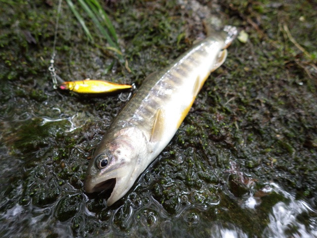 ササ濁りの影響か、もしくは川面に射しこむ光量の影響か、圧倒的にゴールドへの反応が良かった。