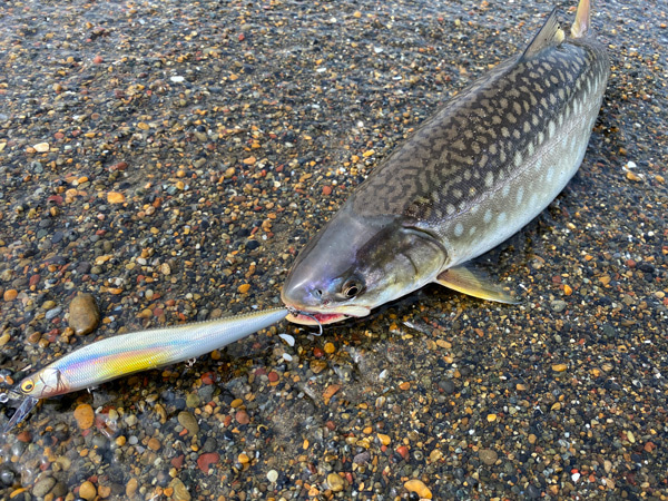 水中でギラギラ輝く魚体から、サクラマスだと思って上げてみると、、、