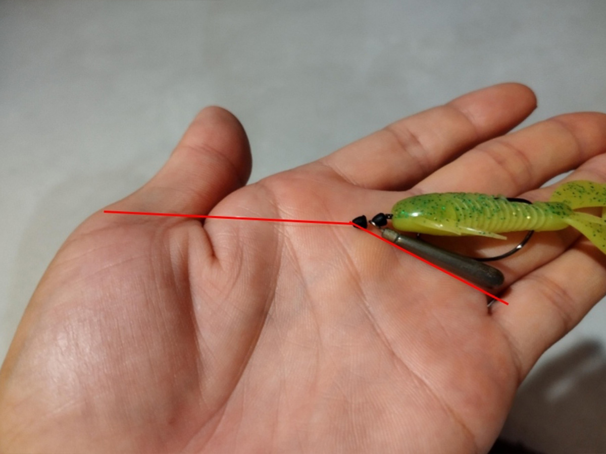ちなみに、丸形とスリム系で比較すると分かりやすいですが、ラインとシンカーの角度が狭くなるほど、引っかかり感が強くなります。
