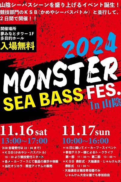 先月のお話ですが、11月16~17日、かめや釣具店主催「モンスターシーバスフェス&かめやシーバスバトル」が開催されました。