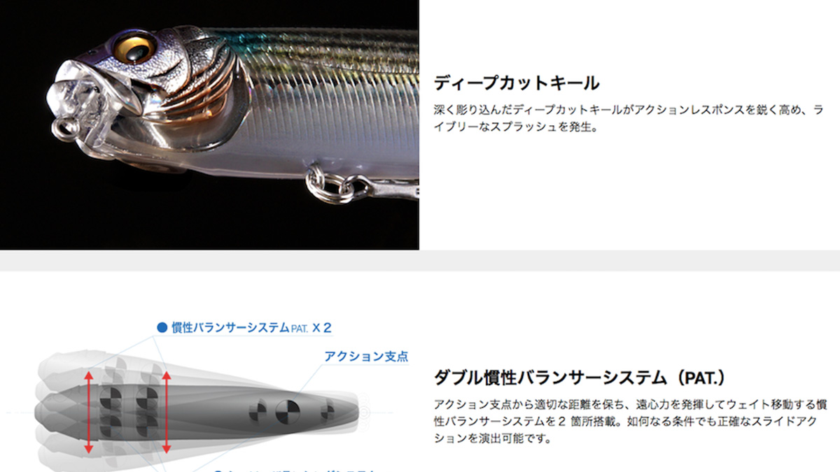 軽い力で操作性が良く、キレの良い派手なドックウォークが誰でもできます!
