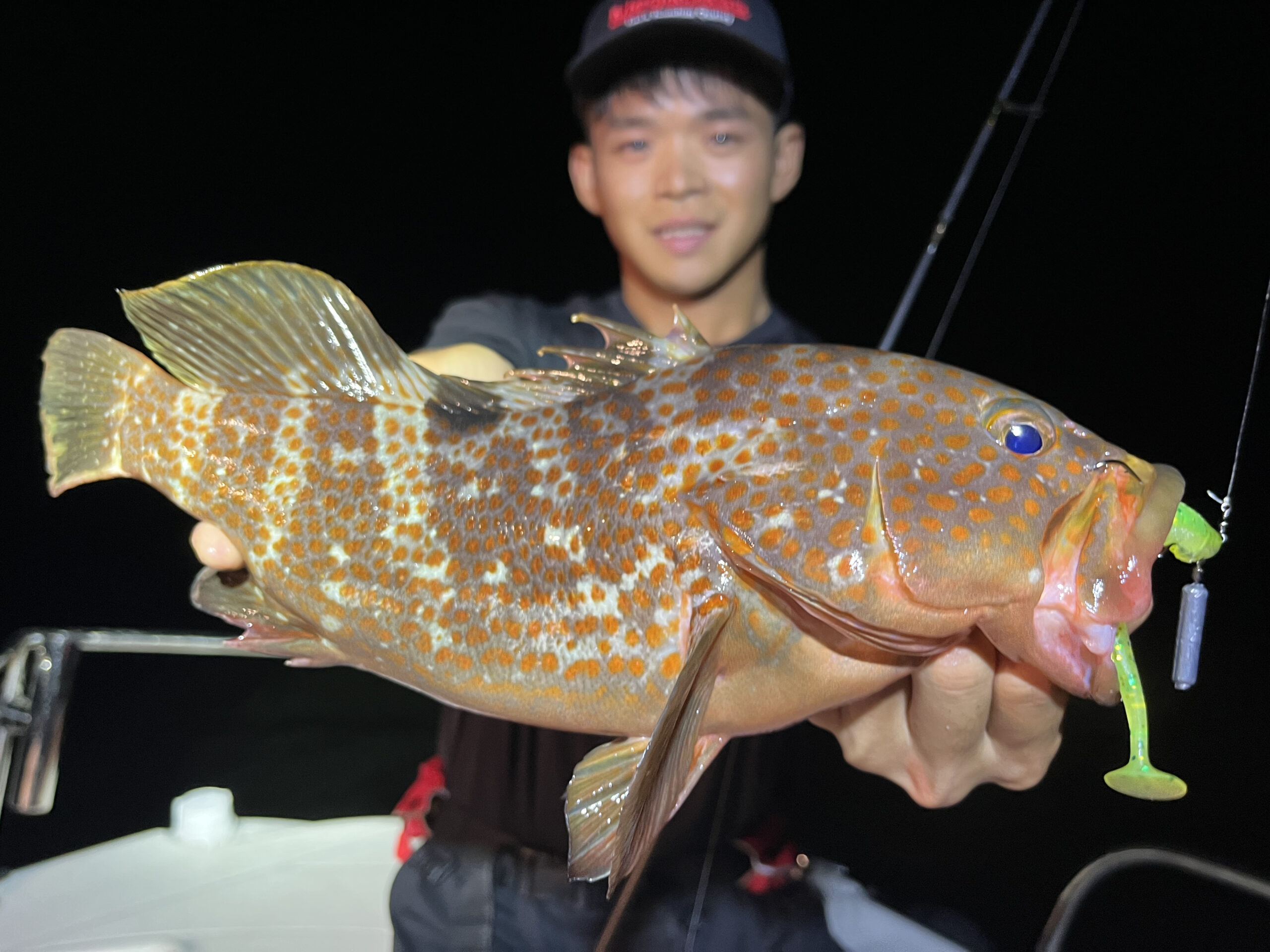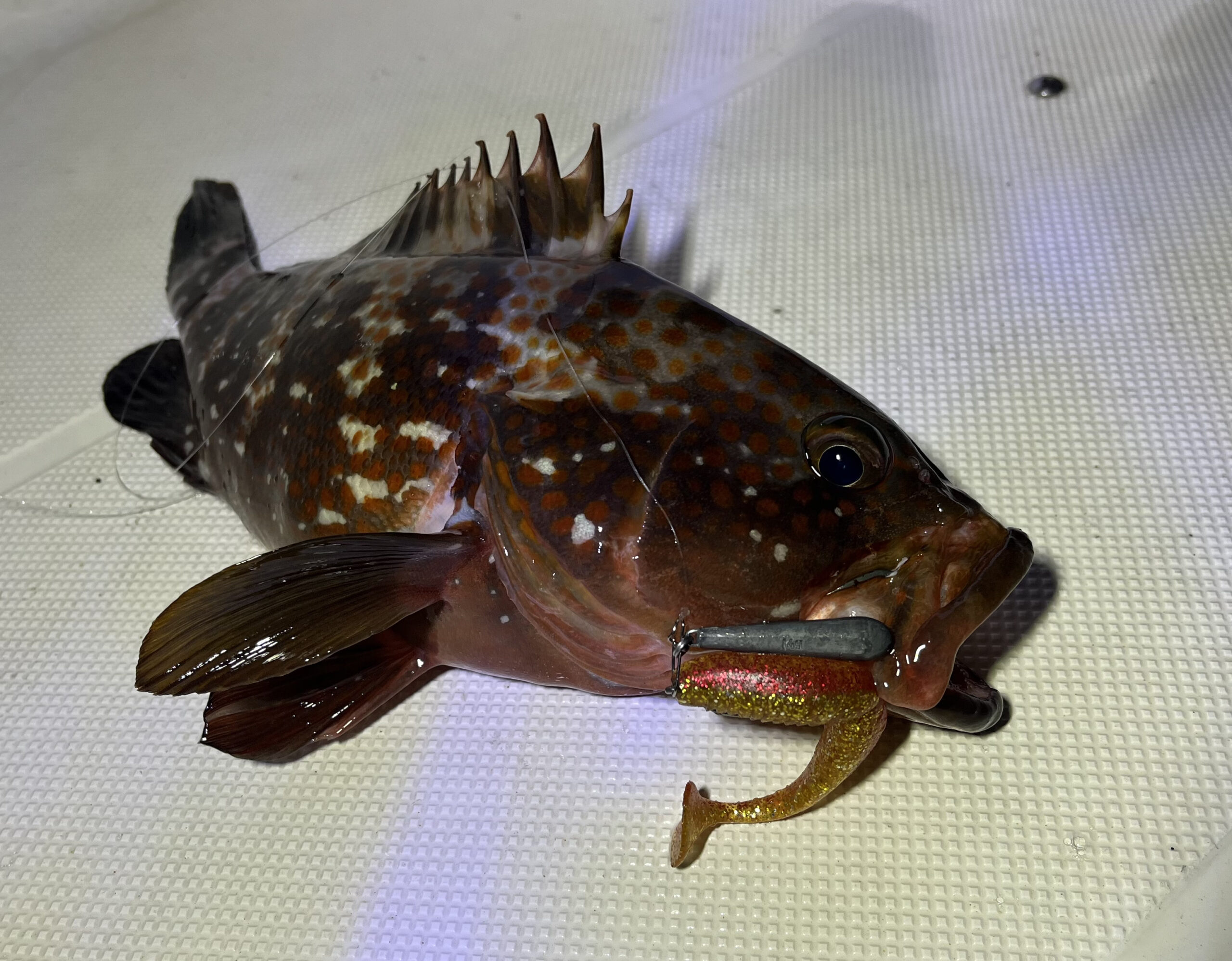 テンポよくサーチすると一撃で高級魚キジハタをゲット!