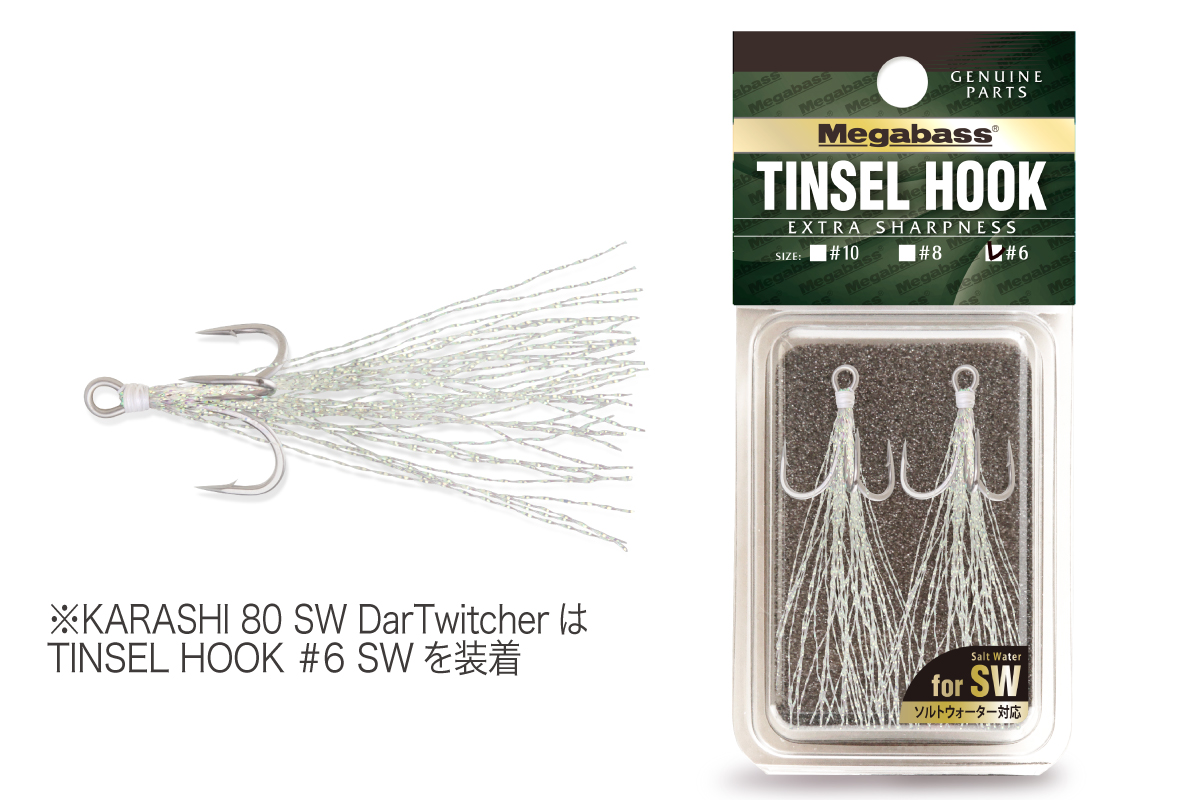 また、ダイビングペンシルのような誘い出しも効果的で、止めた時のステイ時もリアフックに搭載されたティンセルがヒラヒラと漂いアピールしてくれます。