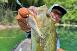 2024年生まれだと思われる個体が湧きに湧いているのでまずはエサ的な存在の X-ナナハンを投入し、魚を釣ることで、そのエリアにバスがいるかを確認。 そして釣れたら今度はワンテンR+2を投入し比較的大型のバスを狙う。バスが広範囲に居るならNEWバイブレーションX ウルトラの出番!と言ったところです。