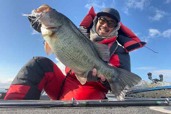スイムジグというジャンルは堅牢で賢いデカい雌バスを騙して釣る釣りなので、ロクマルのヒット率が高い。僕も今年はウオズスイマーで 65 センチと 60 センチのバスを釣りました。