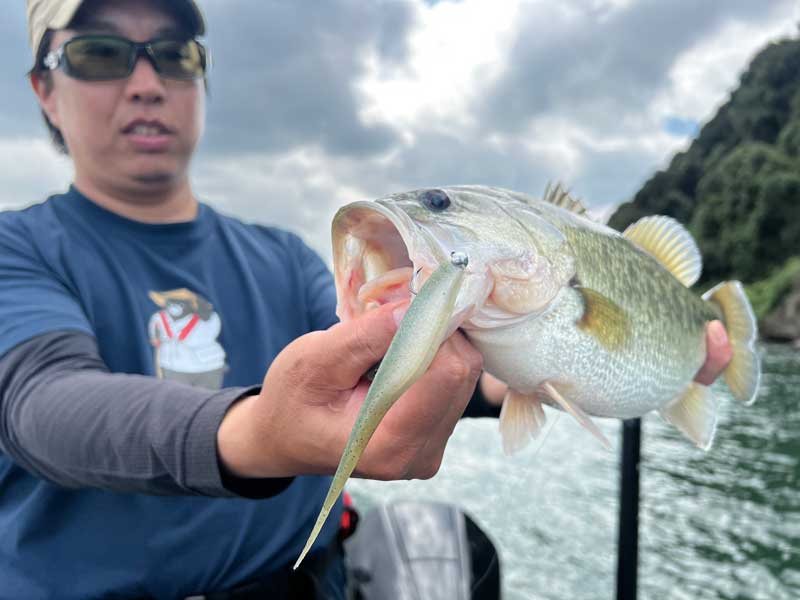 また、このスリングシャッドのミドストもよく釣れる。ワームのサイドがフラット面なのでロールアクションを入れると魅惑的なフラッシングが発生し明滅効果が効いてよく釣れるんです。去年の秋も入れ食いとなり、今年の春もコンスタントに釣れております。