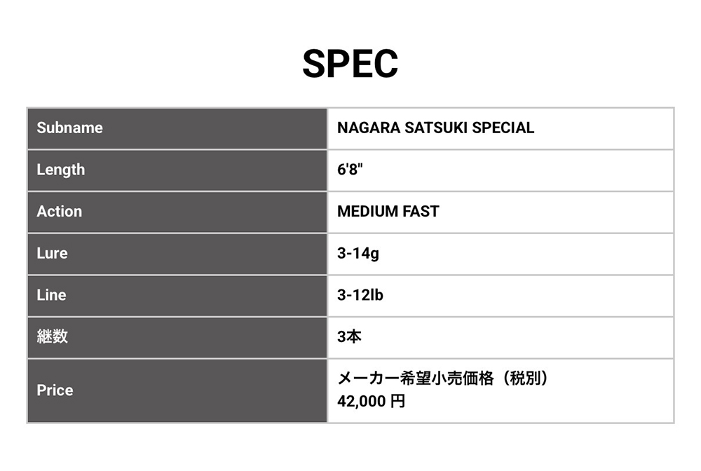 強い流れの中でもルアーを意のままに操れる「操作性」と、不意の良型や、これから現れるサツキマスの強烈な引きをしっかり受け止める「粘り」。その両立を極限まで追求したこのロッドは、アングラーの新たな右腕となるでしょう。