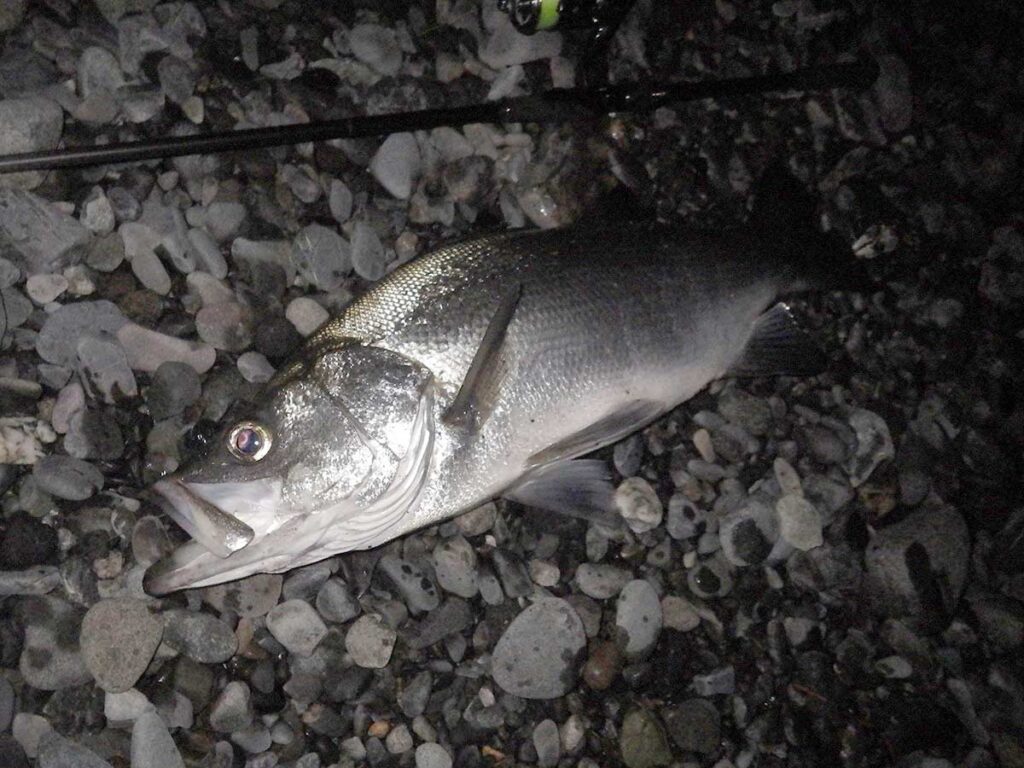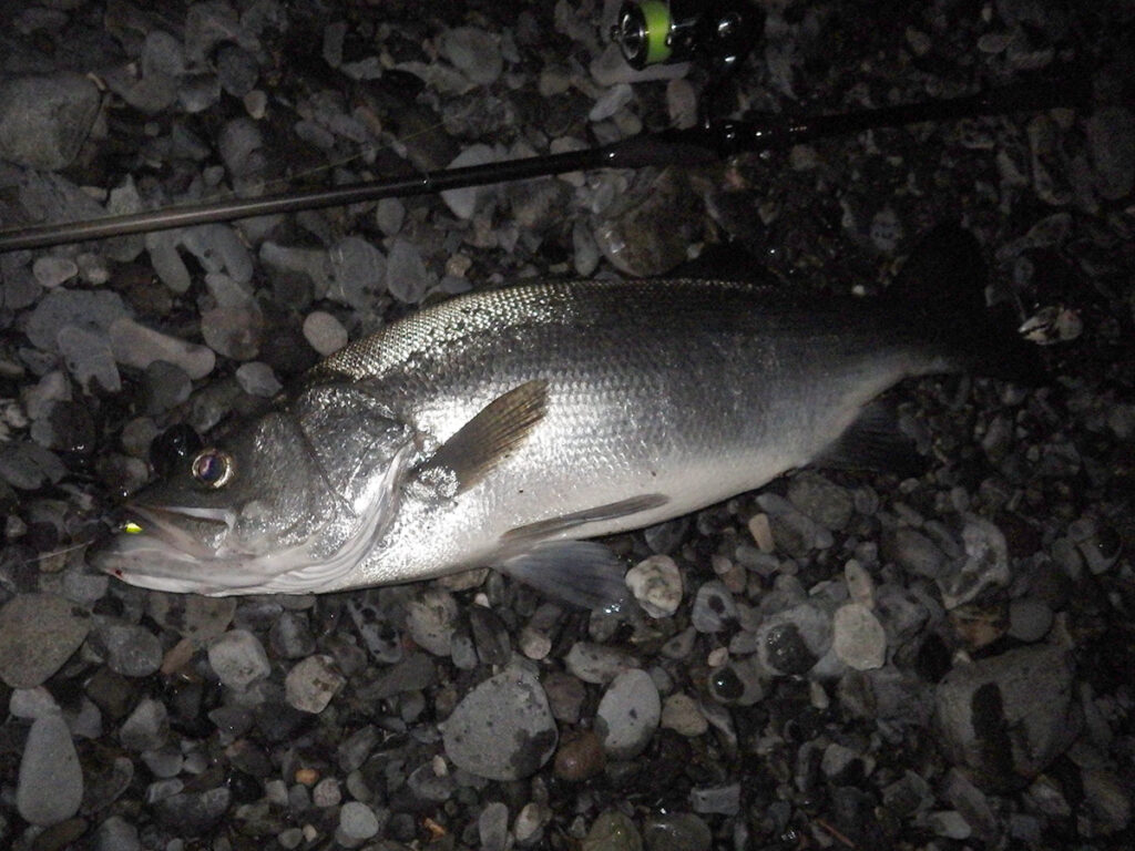 こうして深夜の浜に打ちあがったのは、「やはり!」という予想をはるかに超えた、体高のあるボディをパンパンに張らせたランカーヒラスズキでした!