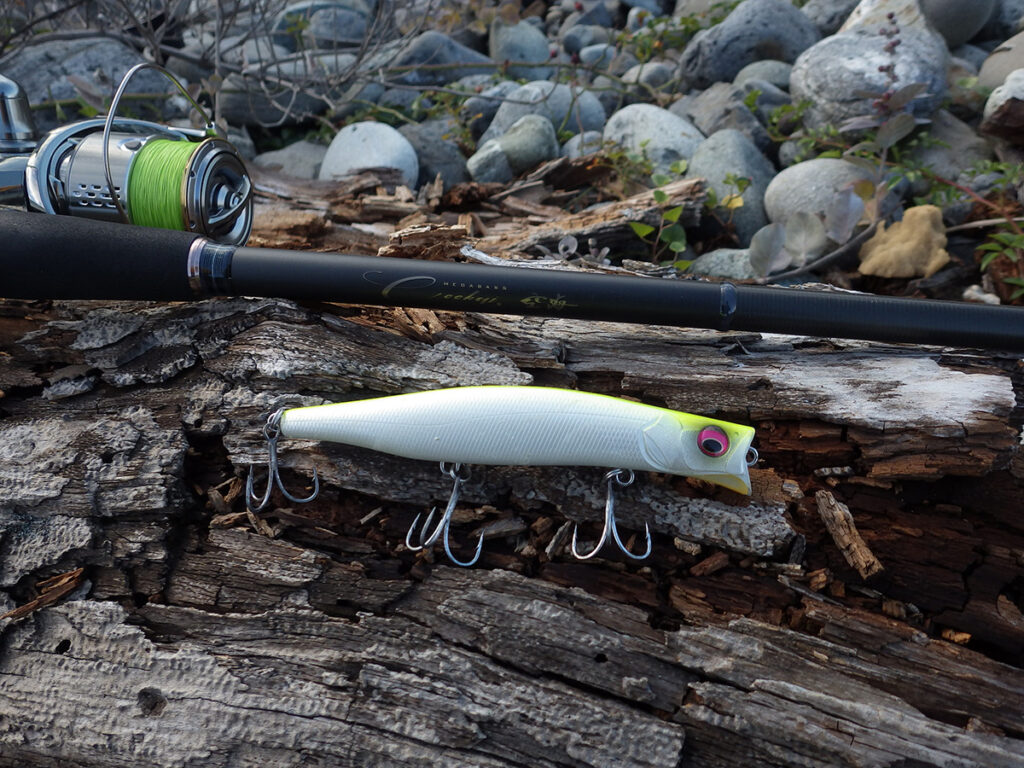 そしてルアーに関しては、パワー負けする可能性の高いフックサイズの小さいルアーは問答無用で選択肢から除外した上で、結論的には(前回、リーダー破断の際に奪われた) KAGELOU 124F が実績・信頼共に十分であるのに加え、「実際にバイトを得ている♪」ということで、手持ちの カゲロウ 124F( PMホットシャッド )を選択。