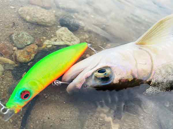 これにより、流速が早く水押しの強い河川でもルアーが浮き上がることなく、レンジキープが容易にできてしまうのです。