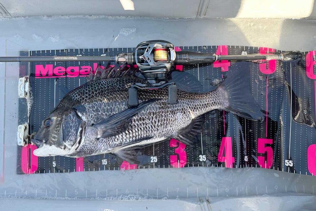 通常6ft台のバス用のベイトフィネスロッドでは、警戒心が強く透明度の高い時、飛距離が要求されるクロダイのピッチングゲームでは7’3”というロッド長が絶対的なアドバンテージとなります。