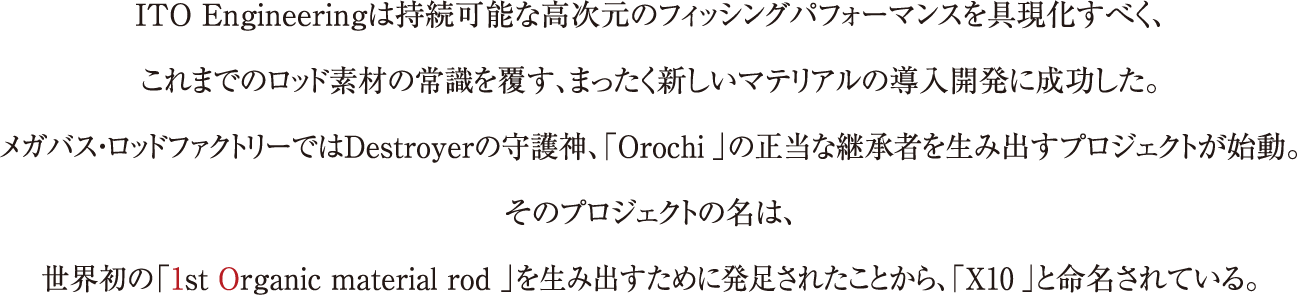 かつて、デストロイヤーの中量級バーサタイルロッドの中核を成した伝説の魔獣、「ジャバウォック」がオーガニックファイバー「X10」を身にまとい、現代に蘇りました。