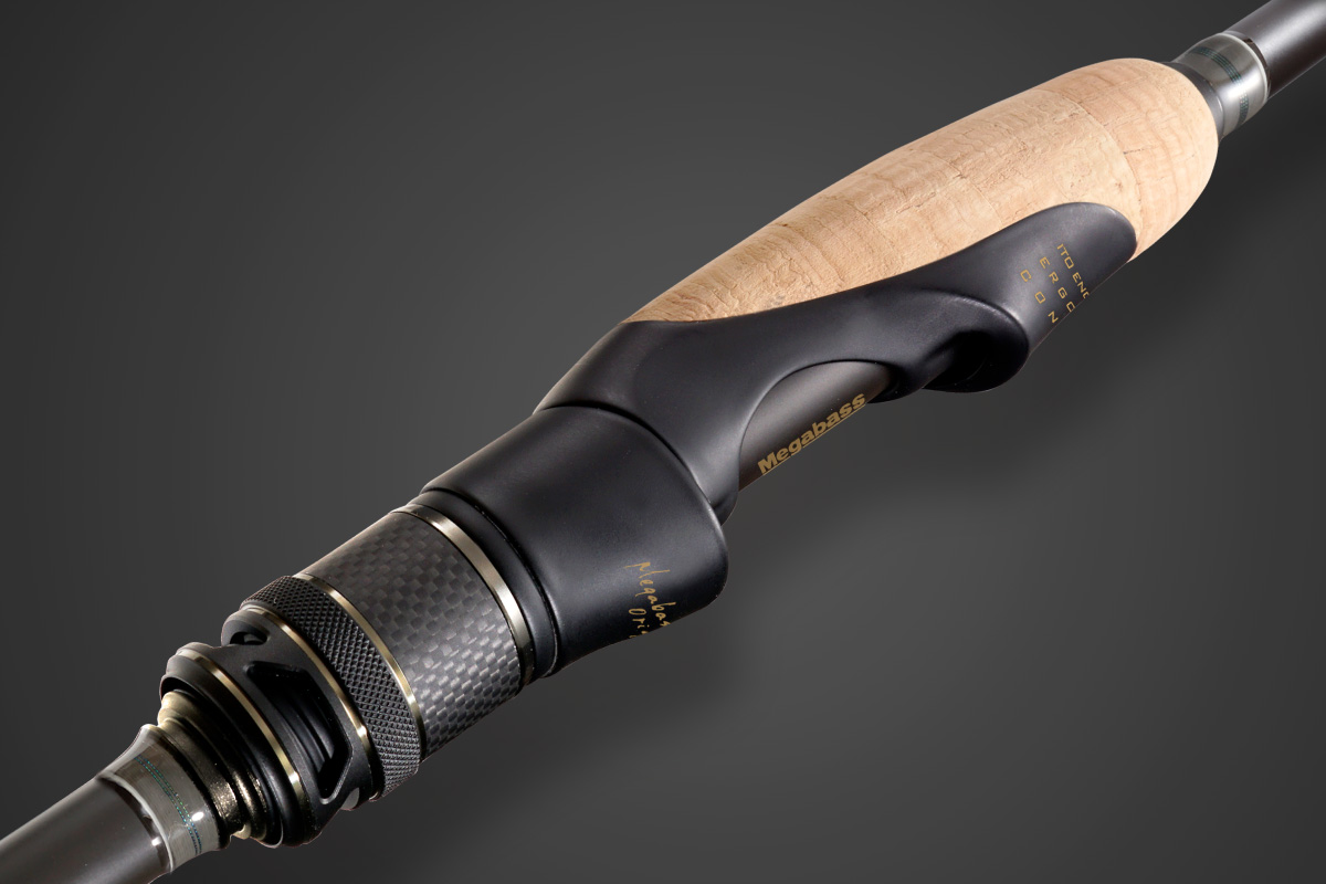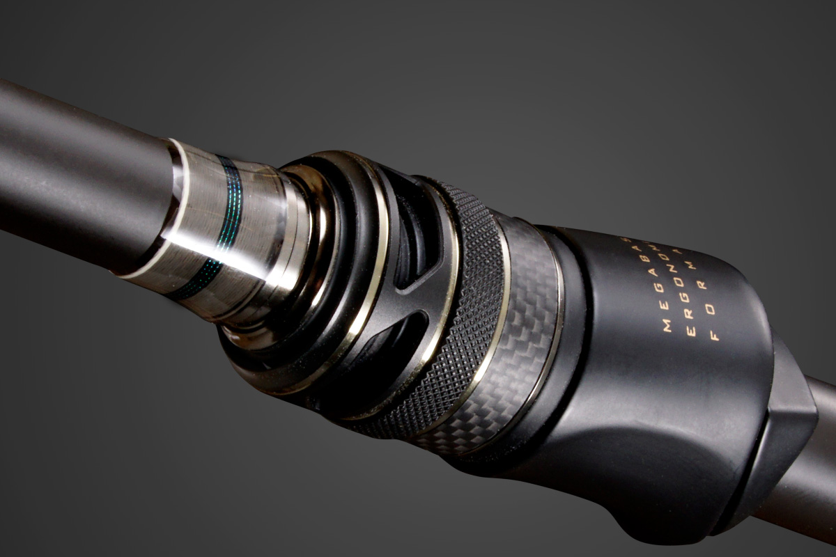 メガバスロッドファクトリーの高精度技術が光る、無垢の高硬度アルミからひとつひとつ丹念に削り出されるオリジナルの軽量マシンカットフード。リールの装着性を高める高い剛性とロッドの保持・操作性に貢献する徹底した軽量化を実現しています。