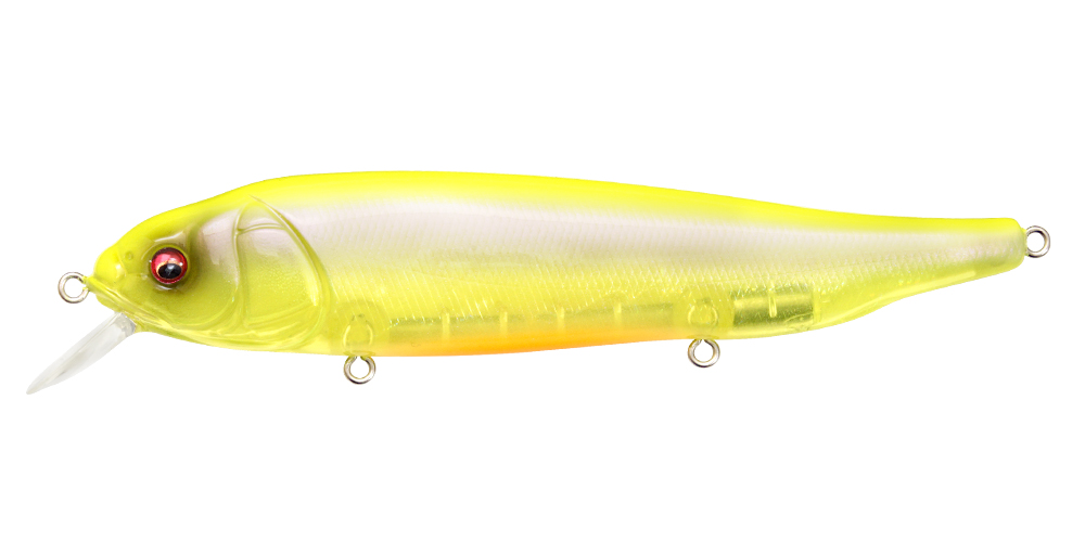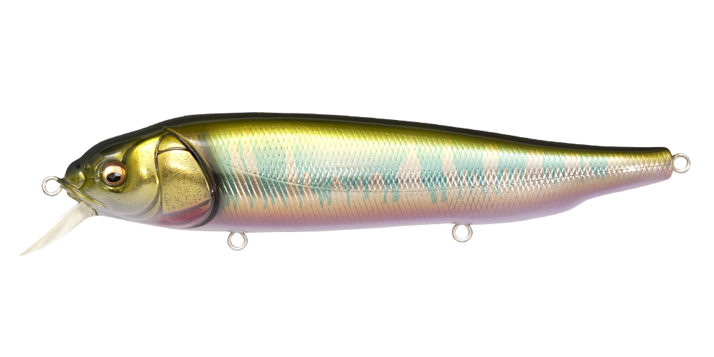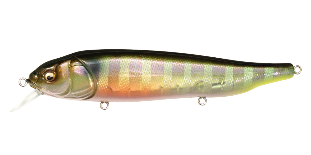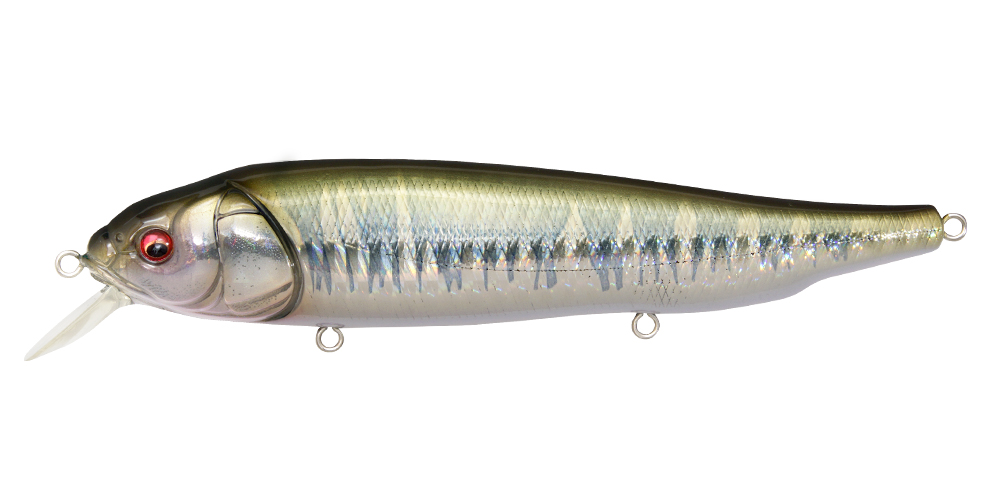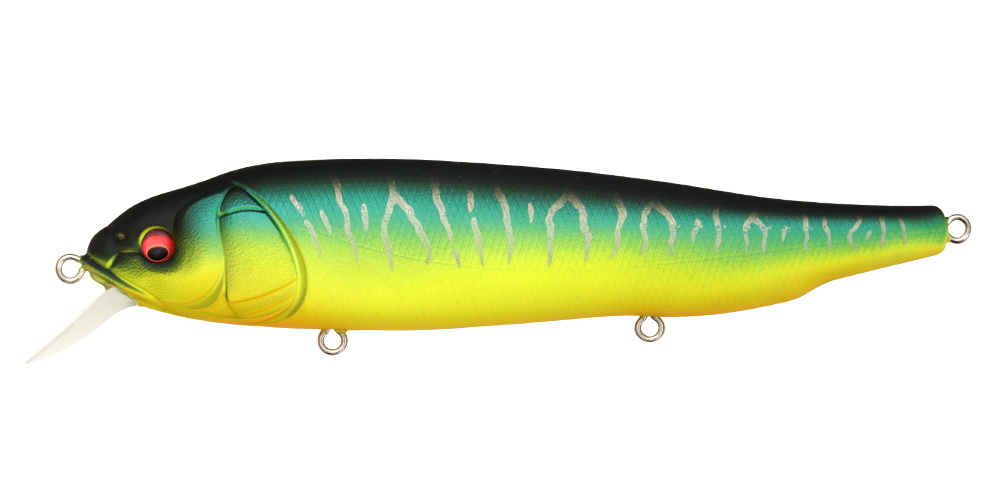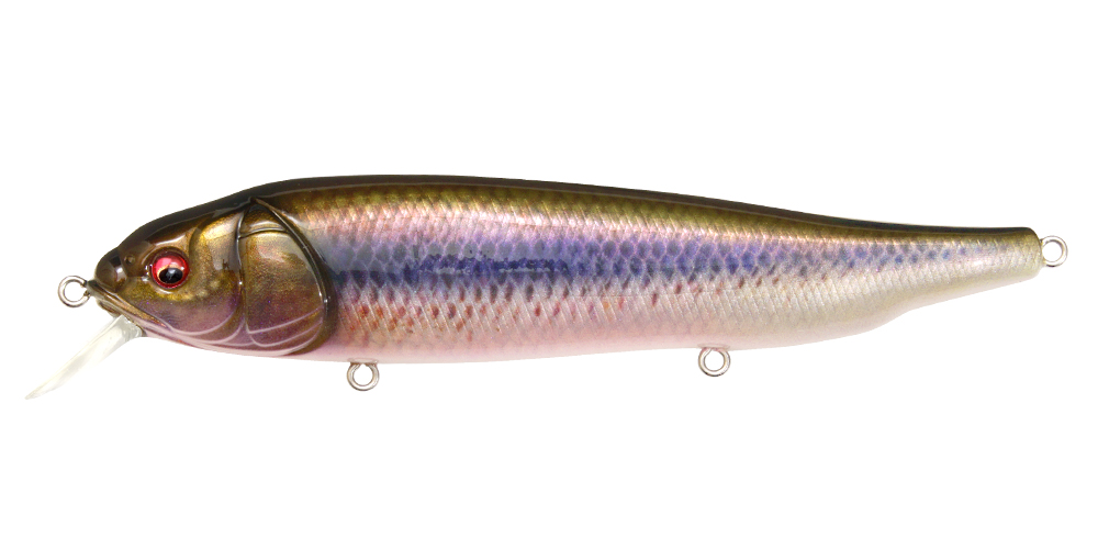 LATES is a real stick roller bait which furiously rolls directly under water, releasing a natural impact targeting the lower range. The flickering created by the furious roll is exactly like a school of bait fishes migrating. At situations where the water surface is disturbed by the wind, it will further release the flickering impact appealing to the targets at the lower range. It is an extreme surface minnow “floating up and capturing” the migrating monsters. The use is simple. All you need to do is to retrieve at the speed between slow and medium speed. Furthermore “rise up & fall” created by decreasing the retrieve speed at times, and the “hovering” which keeps one certain range while rolling will trigger reaction bites. Slow retrieve while using high gear installed reel will help make these operations with ease. Furthermore at top water games, slapping action made by twitching is effective. The instant slide action while fluttering will imitate a real panic bait. Roller bait-LATES will awaken the fish eaters aware of the upper layer. Please check out the power of this special minnow deeply pursuing the surface minnow game.