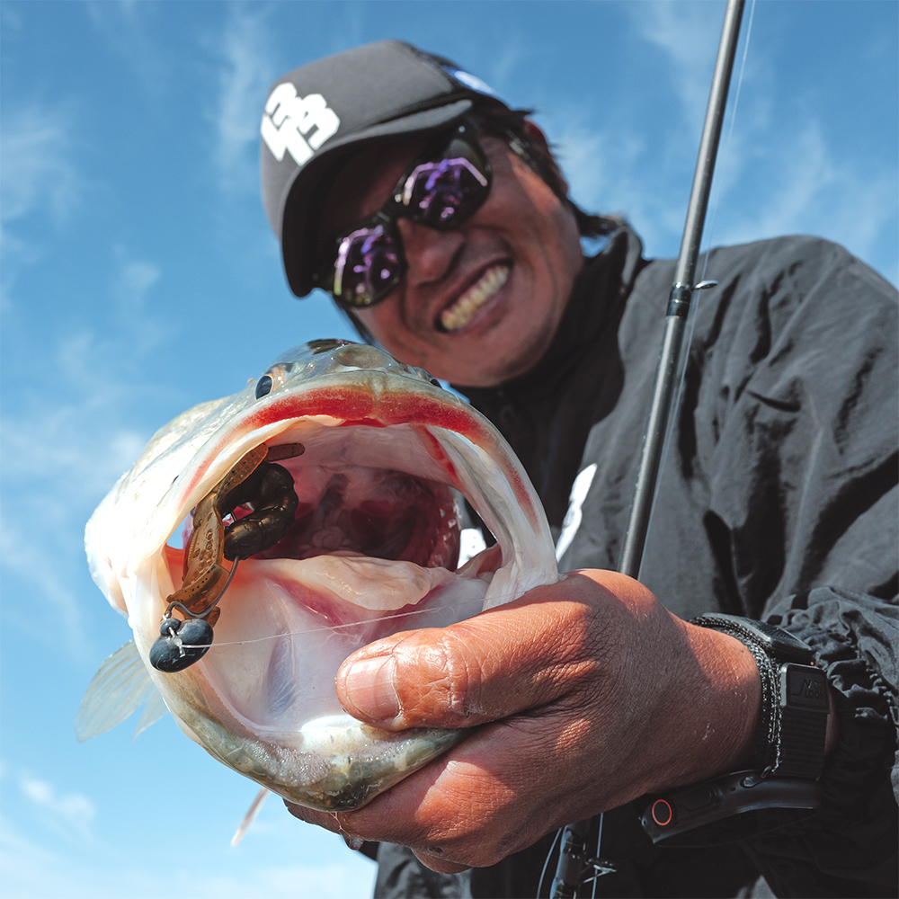 ボトムの誘いにとどまらず、ジグストでも果敢にビッグバイトを連発させる驚異のリアクションマジック、SLAPHOGが覚醒。